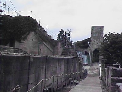 Dry castle moat, where lions once roamed, Castle of the Kings of Majorca, Perpignan |