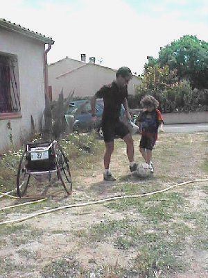 Padraic teaching Anthony some famous "World Cup" soccer moves, Salles d'Aude |