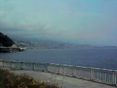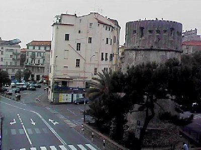 Hostel-castle tower remains and view of coast, Finale Ligure |