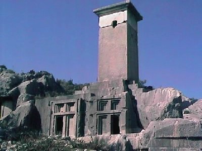 Close-up of a Lycian pillar tomb, Xanthos |